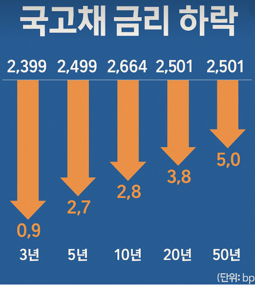 15일 서울 채권시장에서 국고채 금리가 모두 하락하는 모습을 보였습니다. 특히 3년 만기 국고채 금리는 전 거래일보다 0.9bp(1bp=0.01%포인트) 하락하여 연 2.399%에 마감되었습니다. 이는 미국 국채 금리 하락에 동조한 결과로, 미국 채권시장에서의 움직임이 한국 시장에 긍정적인 영향을 미쳤음을 나타냅니다.